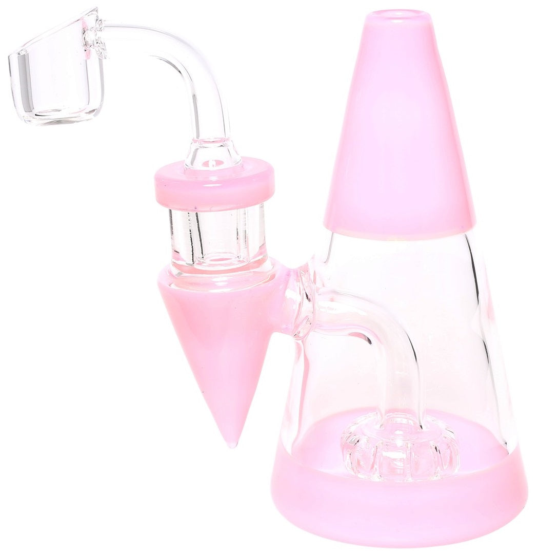 The ultra-modern minimalist dab rig is perfect for leaving by your bedside or bringing along on a trip. Small enough to easily pack and large enough for a generous hit. It also includes a miniature percolator at the base for even smoother vapor. Bring this sleek piece with you when you go out. Your avant-garde friends will be secretly impressed.